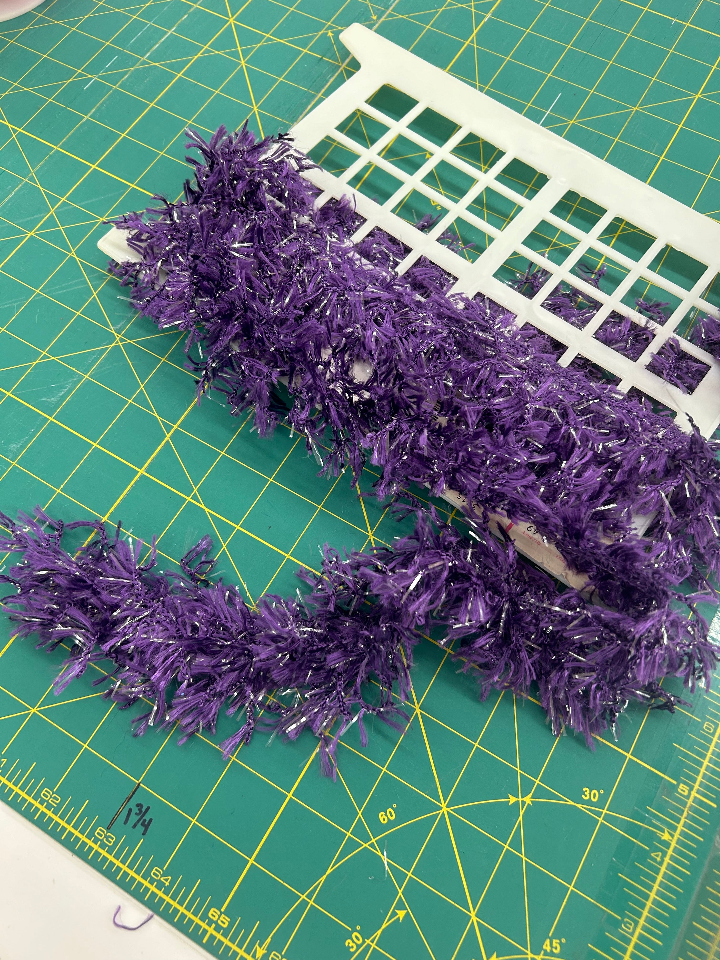 Add a touch of whimsy and playfulness to any project with our Fuzzy Purple Ostrich Fringe Trim! This unique fringe features a fun mix of fuzzy ostrich feathers and shiny tinsel,Perfect for adding a quirky touch to any DIY project or costume.