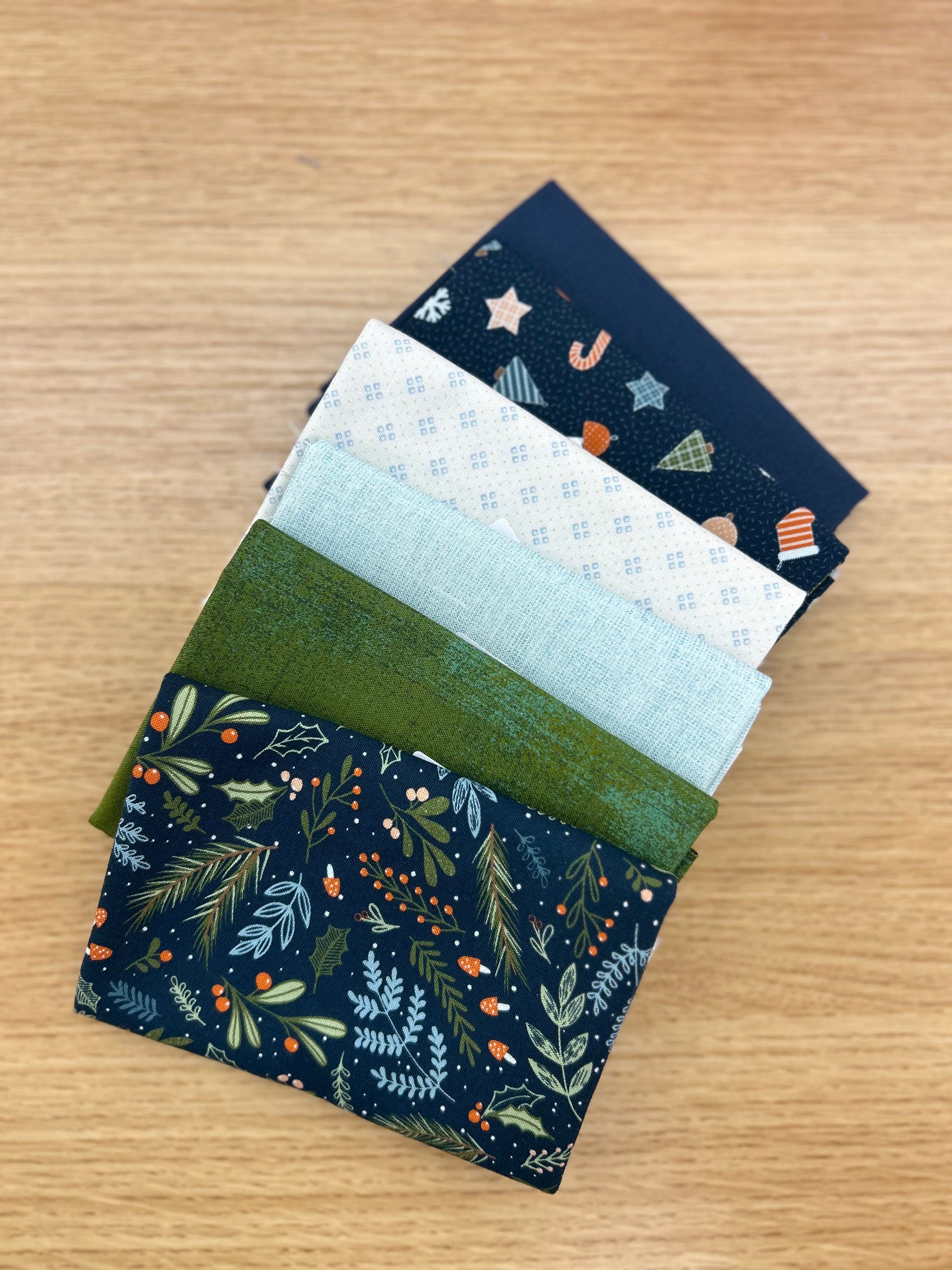 6 FAT QUARTERS AND PATTERN. MEASURES 21" X 21"