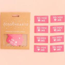 Finish your handmade gift with these adorable labels! High quality, bright pink woven labels feature cream colored text. They are soft to the touch and never scratchy. The labels are fully washable and can handle the heat of the dryer and coordinate perfectly with the entire Sarah Hearts fabric collection.