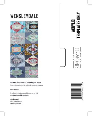 Wensleydale quilt is featured on the cover of Jen's book "Quilt Recipes" and is one of the projects in the book that has an Acrylic Template Only Set (ATO). Acrylic template sets for six of the quilt patterns are sold separately from the book. The 5 other template sets from the book are Wensleydale, Point Addis, Tomar, Winki Stars and Clopin Cushion. Please note ATOs do not include instructions these are only available in the Quilt Recipe book.