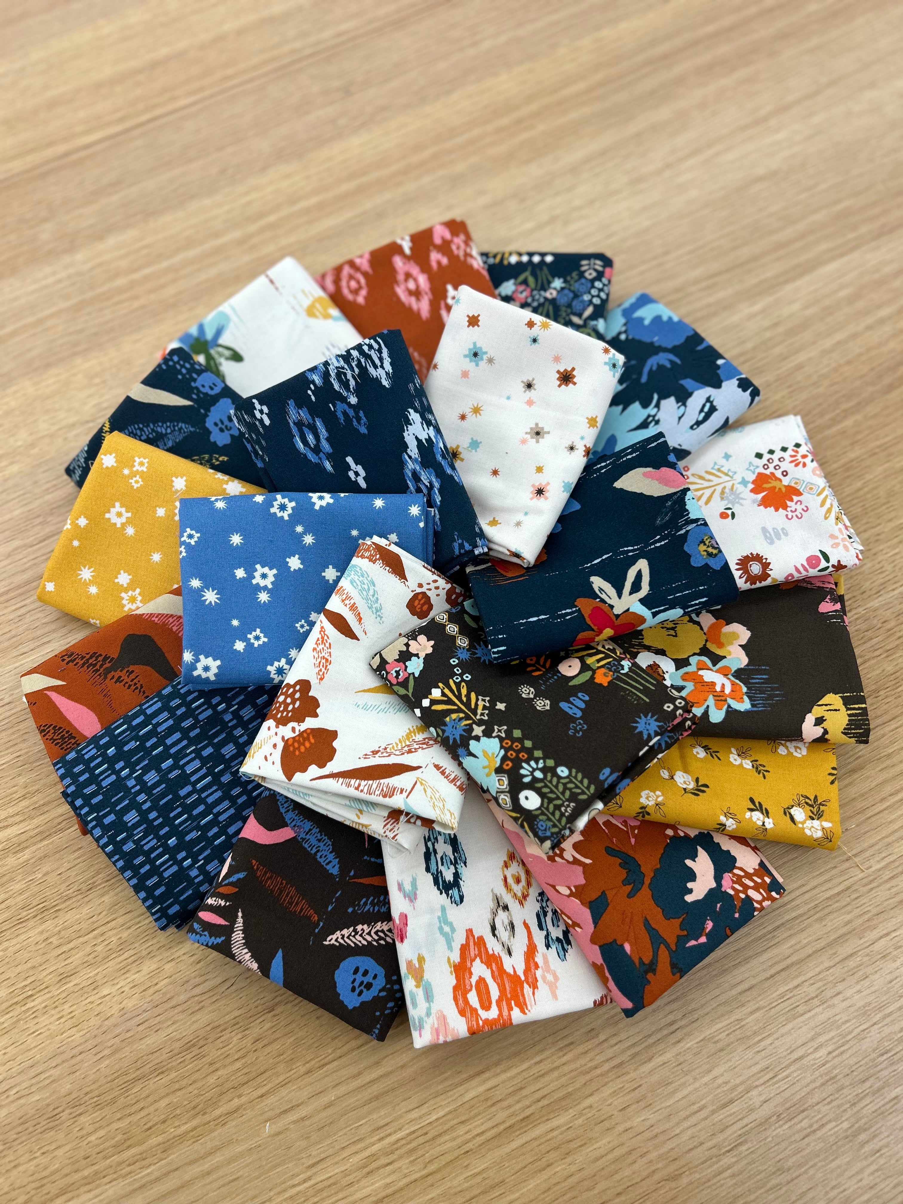 Lucky Break Mini-Mystery is completely FREE or you to join. The quilt requires six (6) fat quarters or (6) quarter yard cuts and will result in a 16”x40” table runner or door hanger. You can select from our carefully curated fat quarter bundles that will look great in Lucky Break. OR, if you want to dig into your stash, we will share a video in our Facebook Group that will help guide you with your fabric choices.